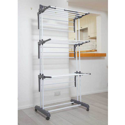 Clothes airers are designed to keep your clothes in tip-top condition by allowing them to gently dry both in and outdoors. If you don’t own or wish to use a tumble dryer, a clothes airer is a cost-effective and convenient alternative as it requires minimal or zero energy to operate. Airers also minimise wrinkles, meaning that you’ll often find that your clothes and other items don’t require ironing once dry. If you wish to dry your clothes indoors in the quickest amount of time, a heated clothes airer could be just what you’re looking for. Heated clothes airers offer a convenient way to dry your clothes faster, even on cold or damp days. These electric airers provide gentle heat, ensuring your clothes dry evenly without damaging fabrics.