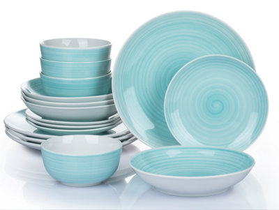 Here at B&Q, we host a wide range of dinner sets in a vast choice of colours and designs to suit any décor or preference. If you regularly sit down to enjoy meals with your family or have friends and relatives over for dinner, our dinner table sets could be just what you need. Our range includes porcelain, glass, stoneware, and more, allowing you to add a pop of personality to any meal. From everyday dining to special occasions, there’s a dinner set waiting to assist. Many of our sets are safe to use in microwaves and dishwashers, but some are recommended to be washed by hand to keep them looking their best.
