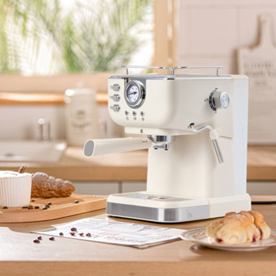 Cooks Professional 15-Bar Retro Espresso Coffee Machine with Steam Wand, Temperature Gauge & 1.2L Water Tank - Black & Silver