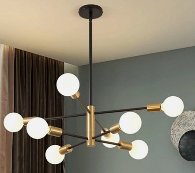 Black and Gold Chandelier E27 8-Lights Height Adjustable Ceiling Light