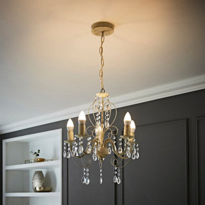 If you want to give your room the wow factor, then a chandelier light is just what you need. Here at B&Q, we know how timeless style never dates, and our collection of contemporary chandelier ceiling lights comes in a great range of sizes and designs. The modern chandelier ceiling light is easily recognised by its multiple branches organised around a central point, usually with three or more individual lights. You do not need to have a huge room to enjoy crystal ceiling lights, as the glass crystal droplets on our chandeliers will sparkle in even the most modest of homes. All you need to do is decide if you want to go for an opulent ceiling chandelier that is dripping with detail or a simpler option with polished metal and exposed bulbs. Whether you're looking for a bedroom chandelier or a living room chandelier, you'll find the perfect option for your home online at B&Q.