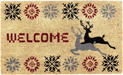 We sell mats with stripes, spots, florals, diamonds, stars, zigzags, and geometric designs, plus Christmas door mats. Our door mats are made from absorbent and durable materials to help them deal with day-to-day use. If you want an outdoor mat, our coir and jute mats are made to stand all weather conditions while also intercepting muddy footprints. You can also buy designs that contain greetings to amuse or welcome visitors, and many of our door mats feature anti-slip backing to keep them in place.