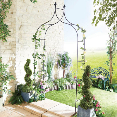 Beyond their ornamental value, our garden arches also offer practical uses. Use them to define pathways or create a sense of enclosure for a cosy seating area. You can also use arches to frame pathways, garden gates, ornamental sculptures, and fountains or as dividers to divide your garden into two distinctive areas. In addition, you can use them to grow vegetables. We sell a variety of attractive garden arches that can be easily and quickly installed wherever you wish to place them. You can choose between styles like contemporary and traditional, as well as a range of materials such as wooden or metal arches. For smaller gardens, our compact obelisks let you create stunning, vertical floral displays within a 400mm space.