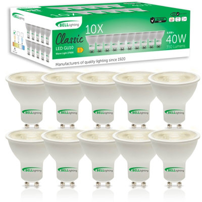 BELL Lighting 10 Pack GU10 LED Bulbs 4.4W 350lm , Warm White 2700K , 40W Equivalent , Non-Dimmable Spotlights