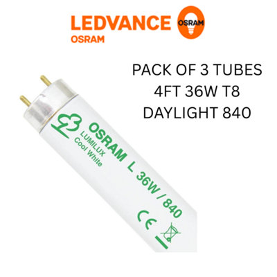 OSRAM 4FT 36W T8 FLUORESCENT TUBE COOLWHITE LIGHT 4000K PACK OF 3