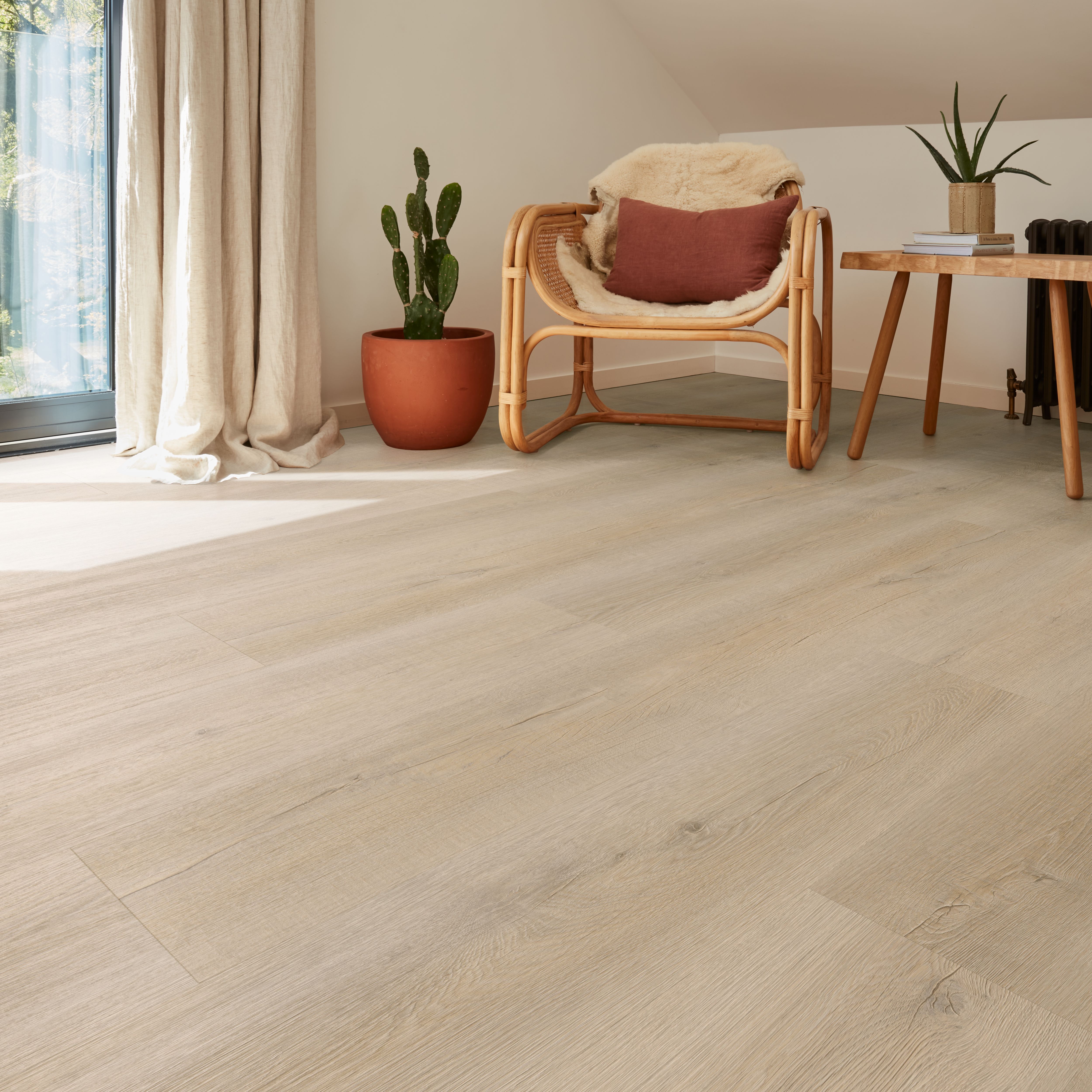 Luxury vinyl click flooring, also known as LVT flooring, is an excellent choice for high-traffic areas offering durability, warmth and water resistance making it ideal for kitchen or bathroom flooring. The quick-to-lay locking mechanism allows you to lay the floor over the top of an underlay and underfloor heating without the need for adhesives. This easy-to-clean, low-maintenance vinyl click flooring is available in a great range of styles, including wood, stone and tile effects. Shop popular options including waterproof vinyl click flooring and grey LVT flooring. For a premium vinyl floor option, explore our range of LVT click flooring.