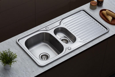 Shop our great range of kitchen sinks and find the ideal design to complement your space. Whether you're updating your entire kitchen or replacing an old sink, we have a large selection of styles, materials and finishes. Choosing the right shape and size is important, and at B&Q, we have plenty of options, from extra wide bowls to compact sink designs, which are perfect for smaller kitchens. Pair your new kitchen sink with a stylish new kitchen tap to finish off your kitchen update.