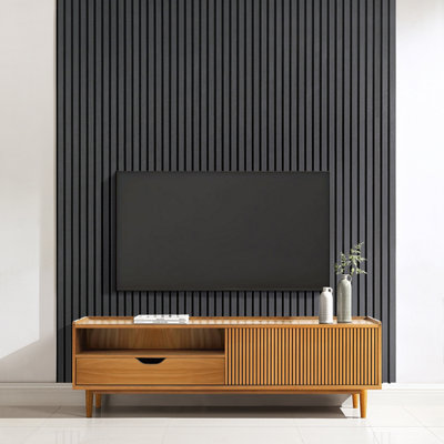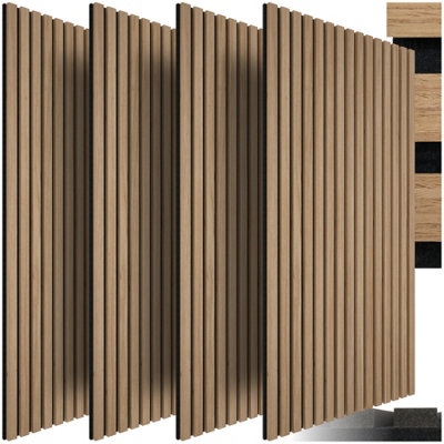 Acoustic Wall Panels with Wood Veneer Slats, Thick Felt and Easy to Install Set of 4 - oak