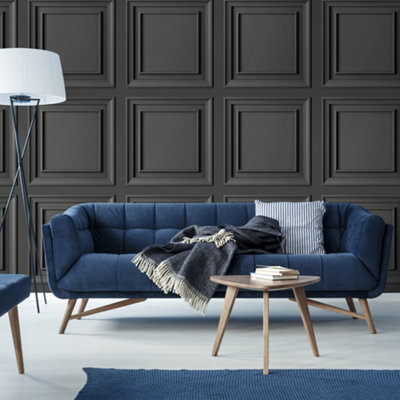 Fresco Wood Panel Charcoal Wallpaper